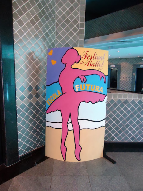 Cenografia Praia. Festival de Ballet. Painel em tecido tema praia, coqueiros em MDF e conchas em isopor
