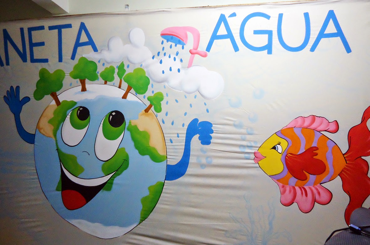 Painel em tecido para escola infantil Submarino Amarelo 3 x 2,5 m