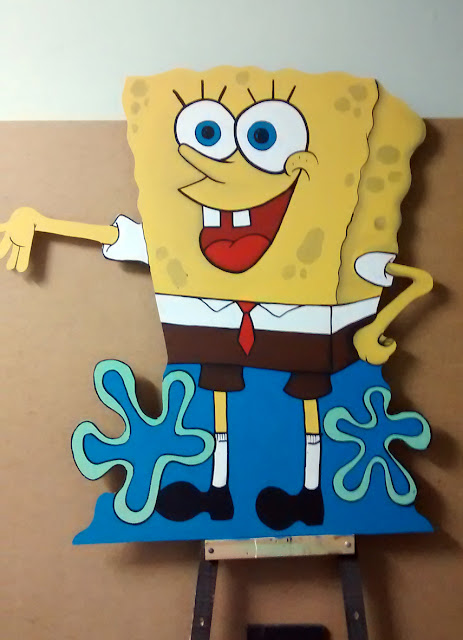 Display turma do Bob Esponja em MDF. Peça cenográfica Bob Esponja e Patrick em MDF para festa infantil